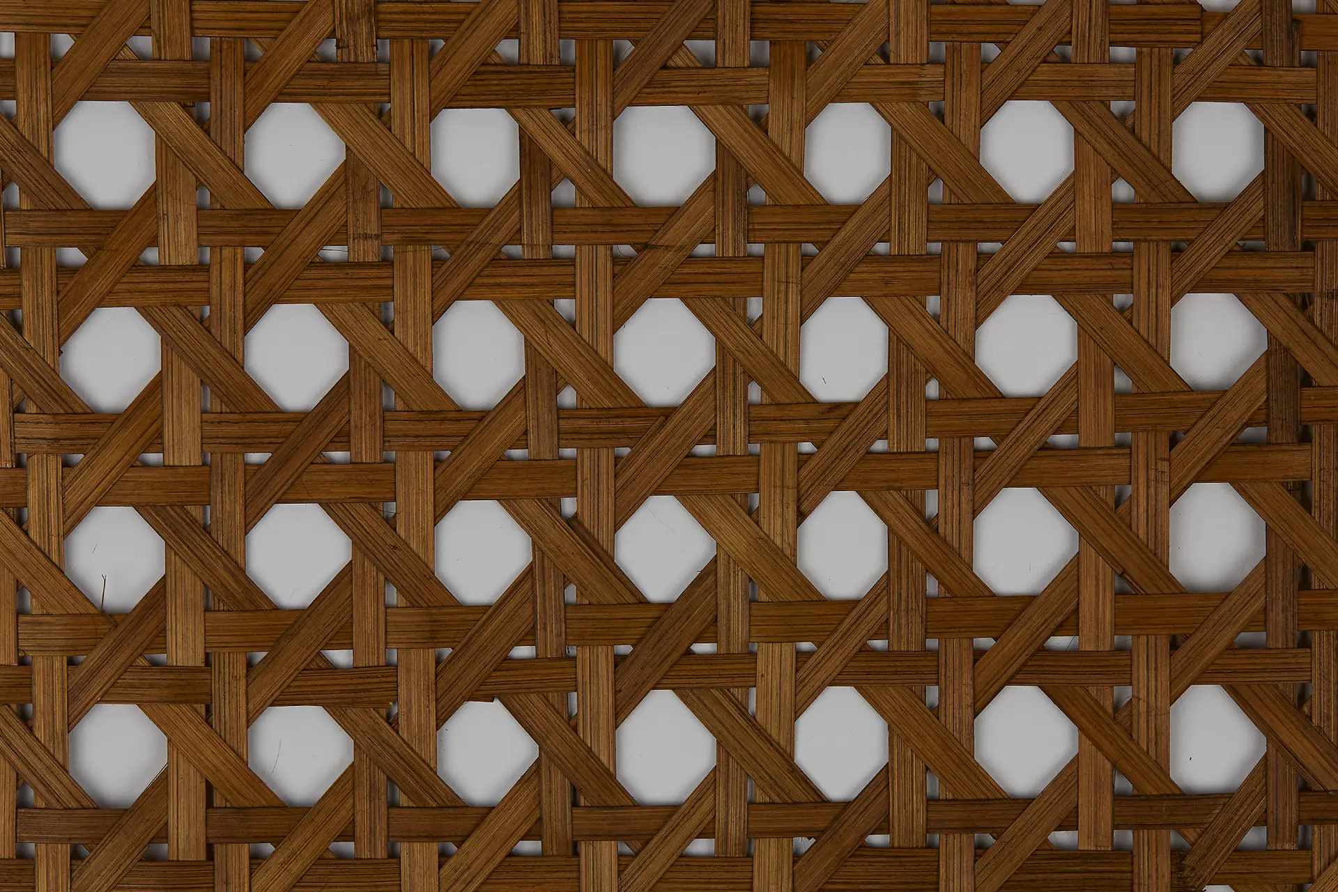 Interlace employs a weaving technique using thin strips of rattan, appreciated as a decorative surface material through the ages. Its natural flexibility and strength make it ideal for panels, partitions, and ceiling treatments. Lightweight and eco-friendly, it adds unique texture and warmth to modern spaces. Comes in natural or smoked colour.
