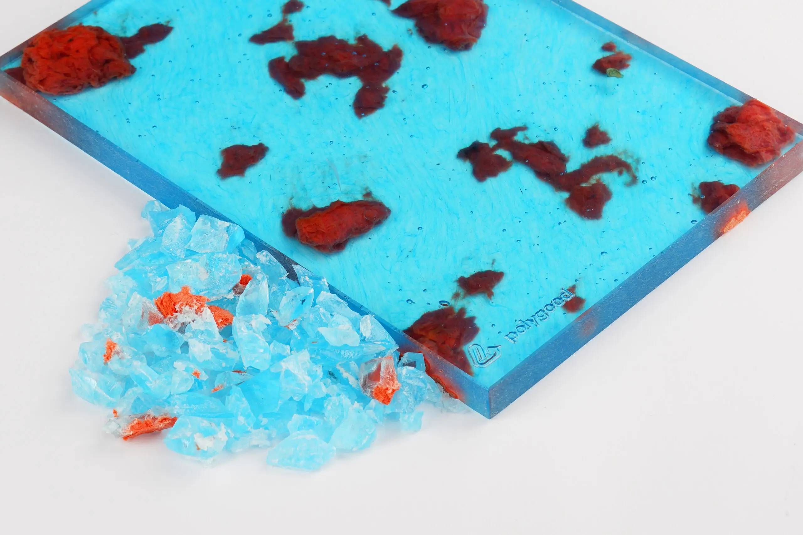 Sourced from everyday post-consumer and industrial plastics —like appliances, packaging, and electronics — Polygood® panels showcase vivid, terrazzo-inspired patterns and marble-like finishes, offering a creative material solution that champions circular design. Robust yet lightweight, these solid panels are water-resistant, easy to fabricate, and suitable for a wide range of interior, furniture, and architectural applications.