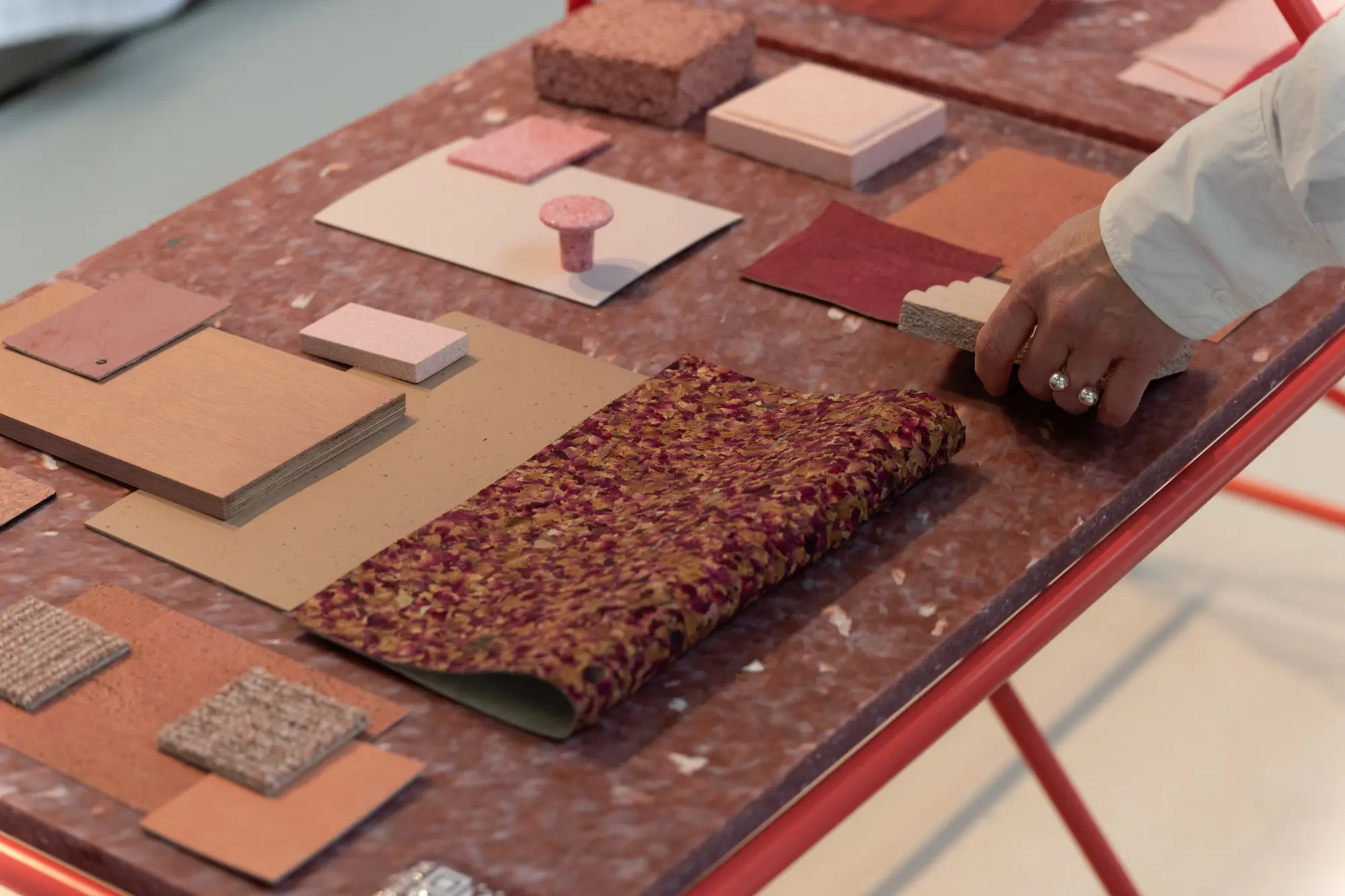 Sustainable material made from 100% Recycled Polystyrene. Derived from electronic waste and equipment, as well as post-consumer and post-industrial waste sources.