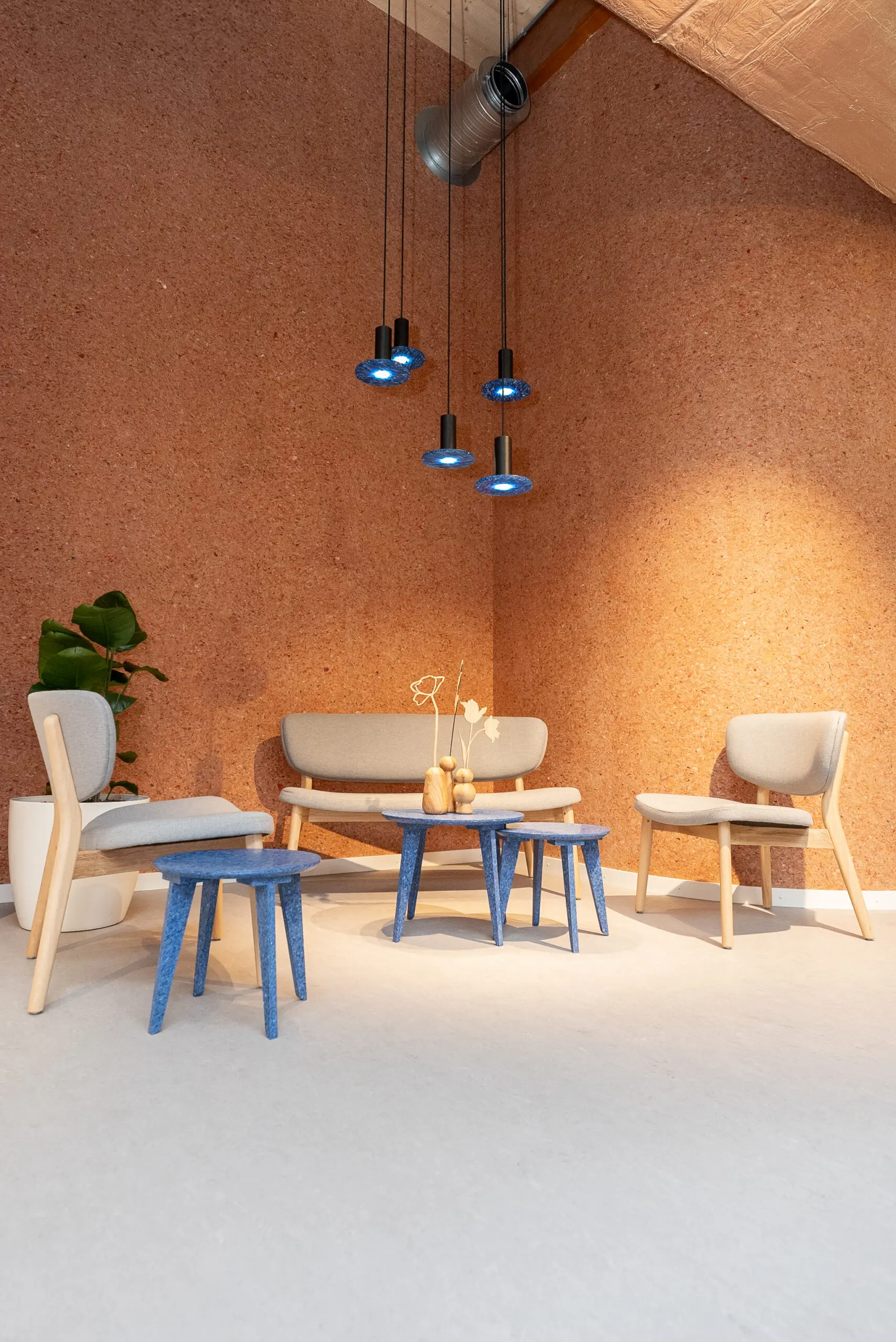 Sustainable material made from 100% Recycled Polystyrene. Derived from electronic waste and equipment, as well as post-consumer and post-industrial waste sources.